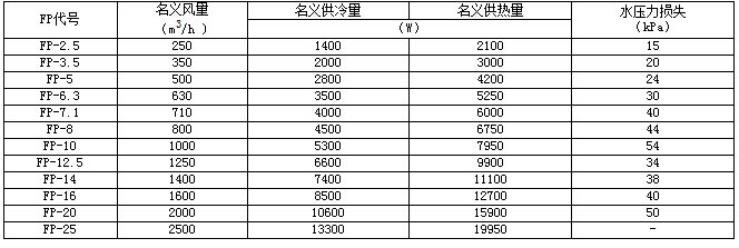 2.名義供冷量指進口空氣干球溫度為27℃、濕球溫度為19.5℃、進口水溫為7℃、進出口水溫差為5℃時的參數(shù);